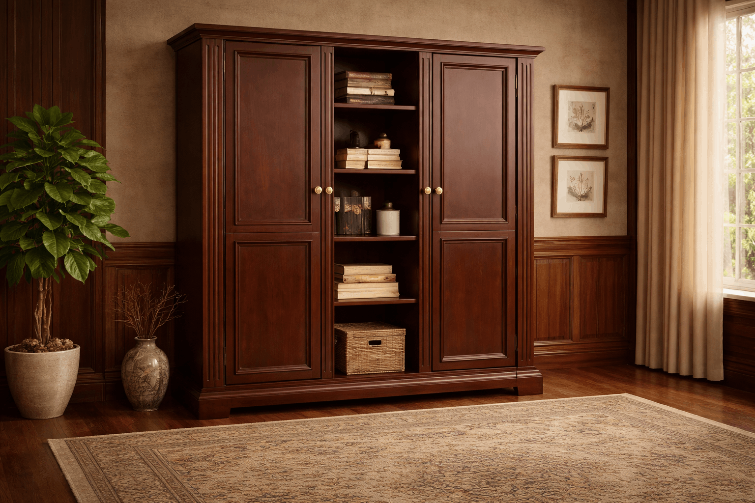 Classic Wooden Storage Cabinet is a versatile and premium furniture piece designed to provide both style and functionality.