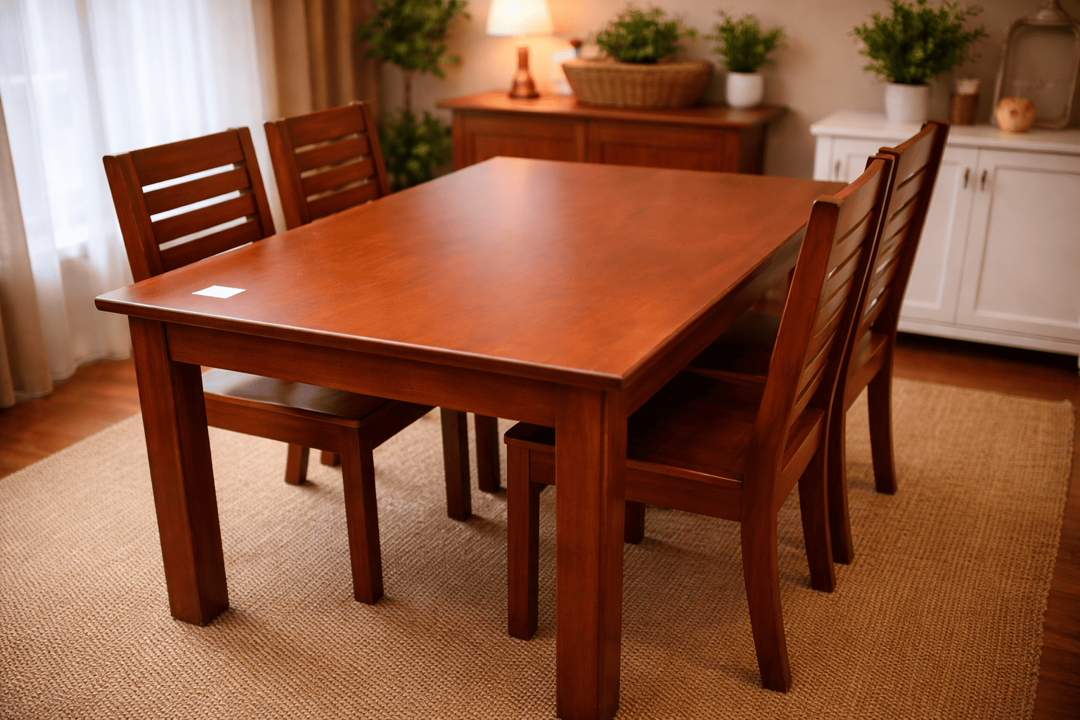 Bring timeless elegance to your dining space with this solid wood dining table 4 seater. Strong, durable, and perfect for everyday dining in modern homes.